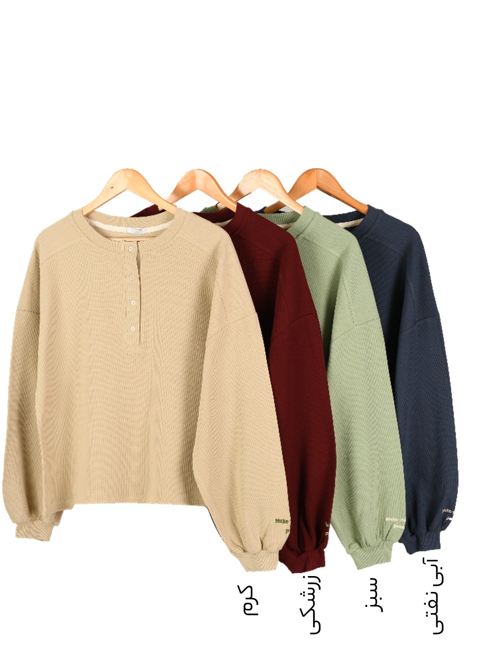 بلوز زنانه مدل آستین گلدوزی جنس بیسکوئیتی در چهار رنگ کرم زرشکی سبز و ابی نفتی موجود است و مناسب برای فصل های پاییز و زمستان است.